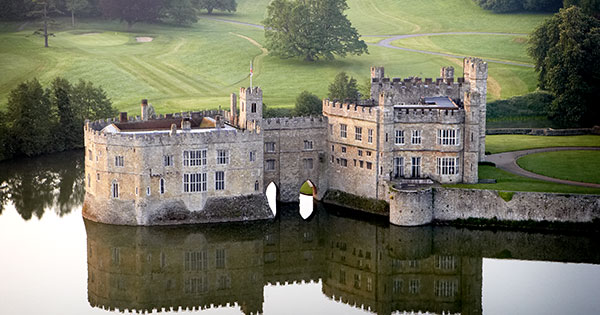 Leed's Castle is in Kent in Southern England, not to be confused with the town of that name in Northern England.