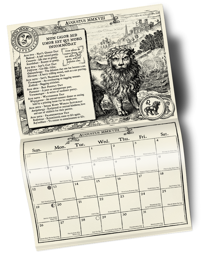 It is time to plan for next year with this magnificent wall calendar. Not only is it beautifully designed using fifteenth century engravings, your friends will think that you swallowed a dictionary.