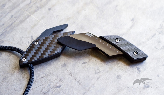 As promised, this week PD has a gadget that fits into your pocket. Musvalk is the Dutch name of the smallest falcon, after which this uniquely styled neck knife is named.