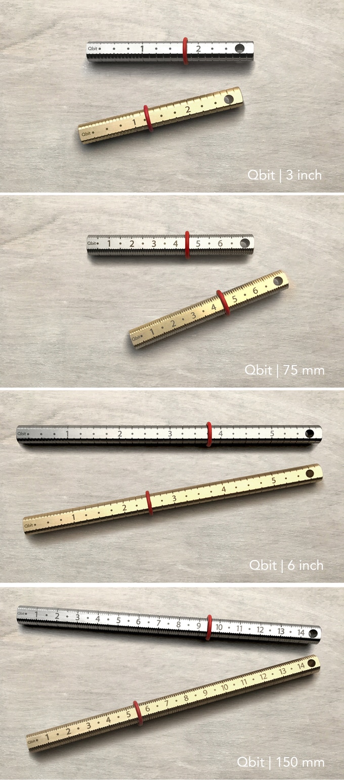 The Qbit is available in several versions. Choose between brass and steel, metric and imperial, and choose between two lengths (75mm/3" and 150mm/6"), which will make both sides of the Atlantic happy.