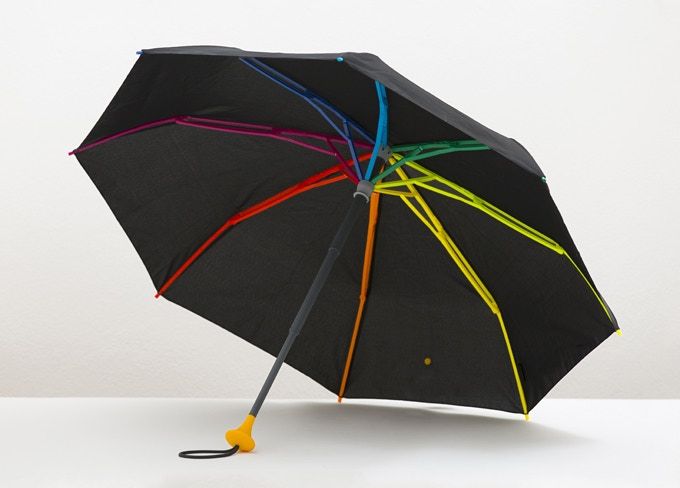 Not only is it better for you, think of all the broken umbrellas that end up in landfill. The polymer bits are available in a number of colours, or go for the rainbow effect. The material is available in either black or white.