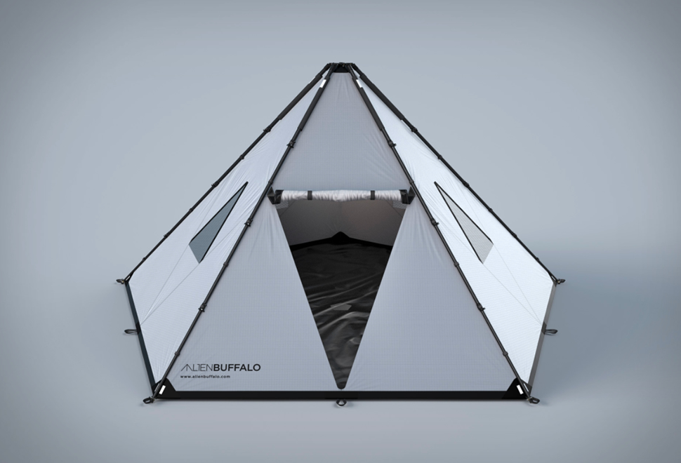The Alien Buffalo tent caught PD's eye, firstly for its unusual pyramidal shape, reminiscent of ancient nomadic structures. The tent material is attached to the frame, making it easy to set up, in a claimed two minutes. There is no central pole to get in the way. There are also no fiddly guy ropes. Modern materials are used. It comes in two sizes.