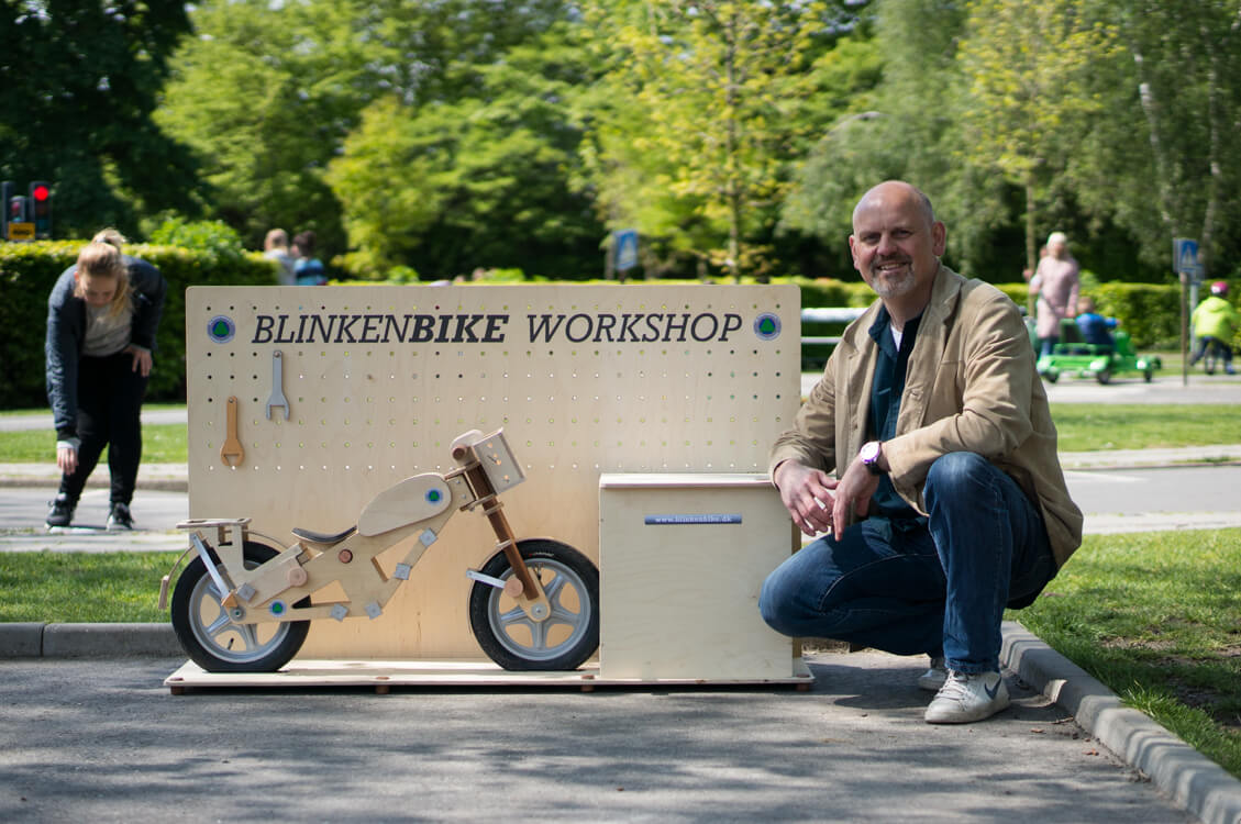 Today PD is wishing for a second childhood. We in Europe never gave up our wooden toys, which are uncommon in the US. Even so, every now and then someone comes up with something new that makes us wish we were kids again. Take the Blinkenbike from Denmark, pictured with its creator.